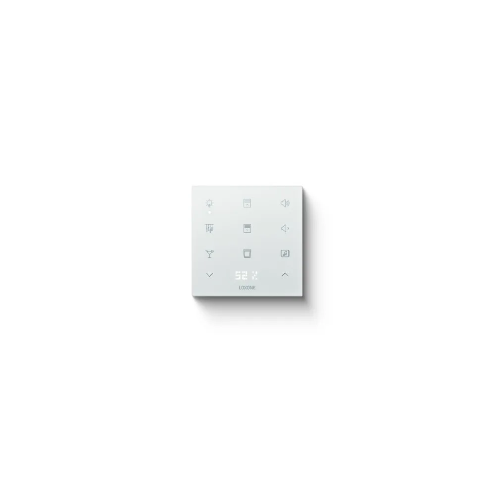 Loxone Touch Pure Flex Battery Air (bílá) je plně personalizovatelný dotykový panel s až 12 volitelnými dotykovými zónami, integrovaným LED maticovým displejem, senzorem teploty a vlhkosti a bezdrátovou technologií Air – navržen pro montáž tam, kde není vedení datové nebo napájecí kabeláže.