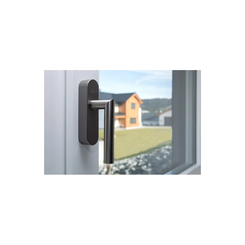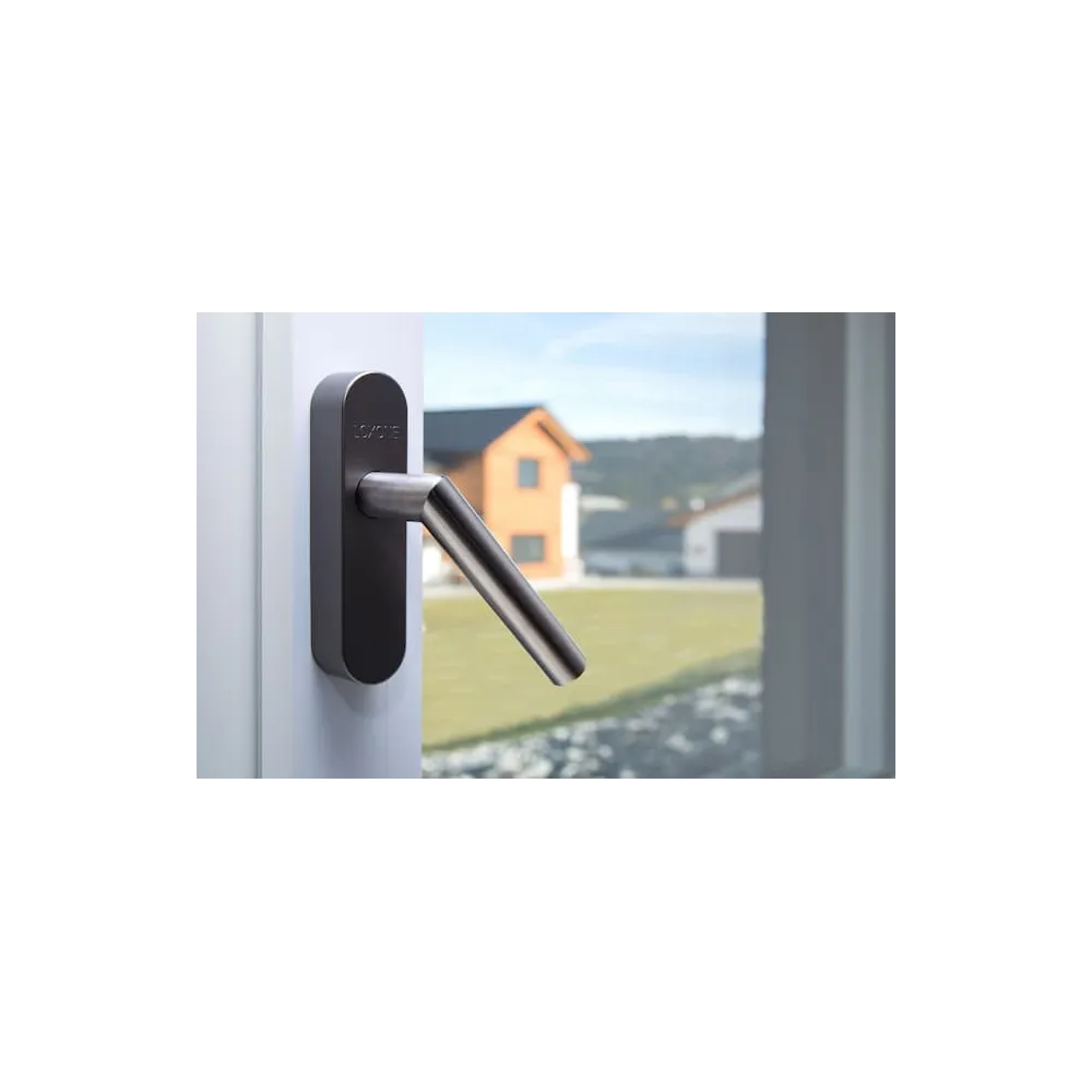 Loxone Okenní klika Air je inteligentní senzorová klika, která přesně rozpozná stav okna – zavřené, otevřené nebo vyklopené. Pomocí bezdrátové technologie Loxone Air komunikuje s vaším systémem Loxone Smart Home a umožňuje automatické řízení vytápění, klimatizace nebo zabezpečení podle aktuálního stavu okna.