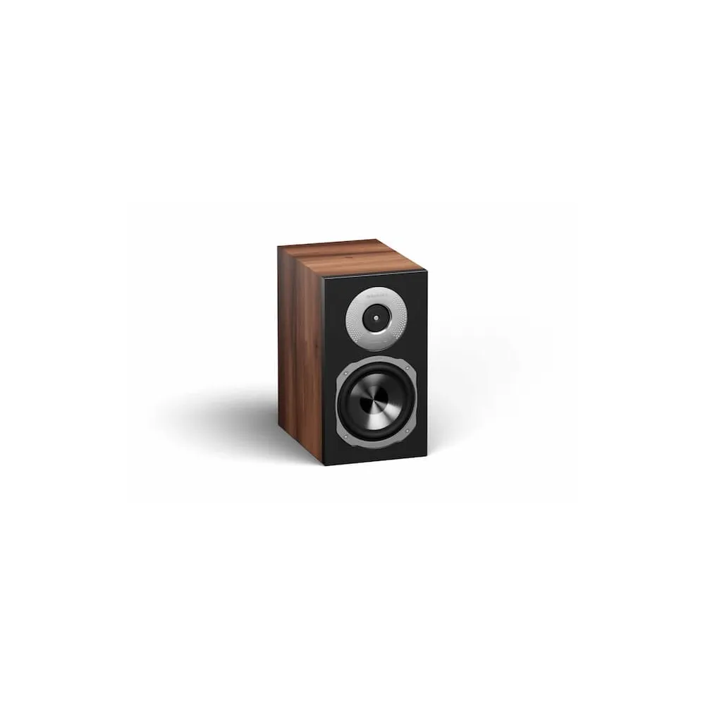 SIGNUM 20 v nádherném ořechovém dekoru je kompaktní 2pásmový regálový reproduktor pro milovníky detailního a přirozeného zvuku. Nabízí perfektní rovnováhu mezi jemnými výškami, precizními středy a silným basem, a zároveň přináší elegantní vzhled přírodního dřeva do každého interiéru.