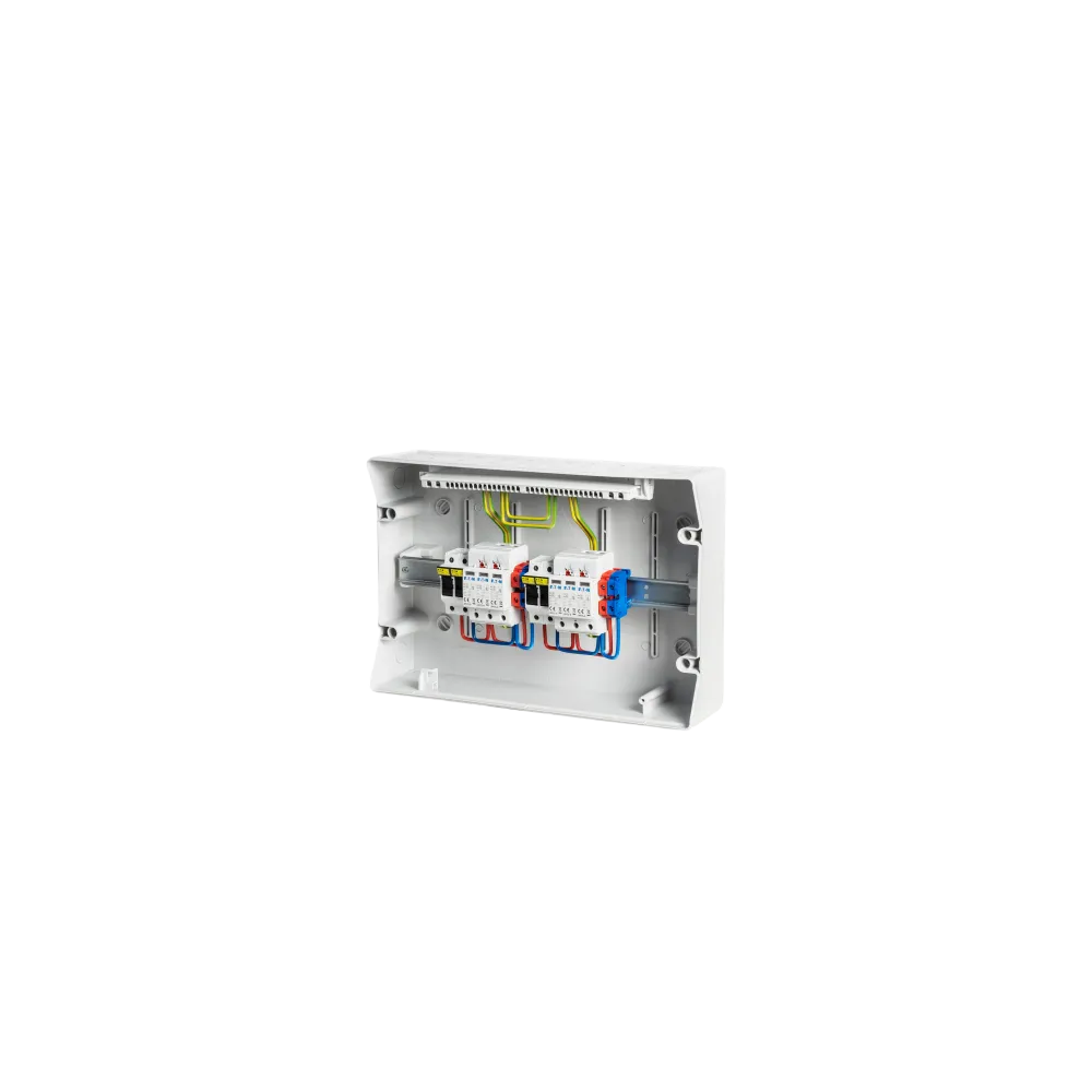 R-FVE-DC2 IKA je profesionálně osazený DC rozváděč pro fotovoltaiku určený mezi polem panelů a střídačem. Kombinuje svodiče přepětí třídy I+II (T1+T2), kvalitní pojistkové odpojovače pro každý string a přehledné značení, takže instalace je rychlá, bezpečná a podle norem. Ideální řešení pro 2 nezávislé FV stringy.