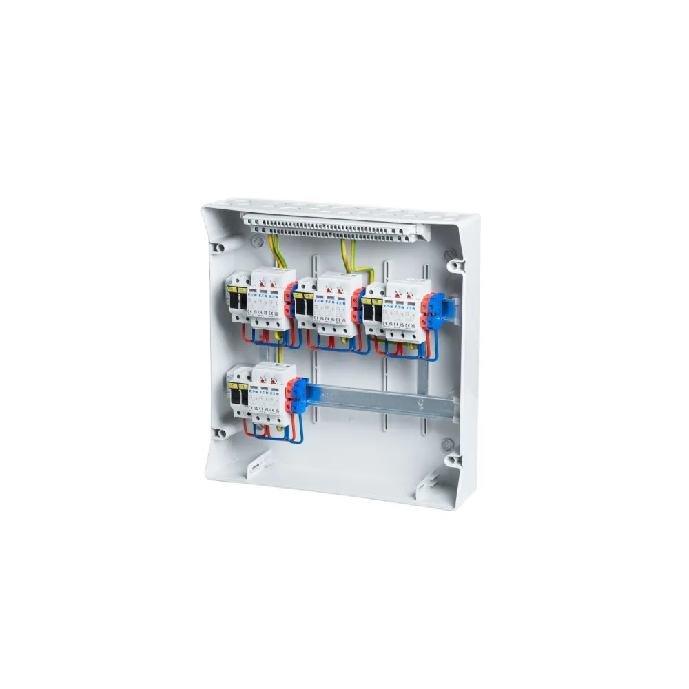 R-FVE-DC4 IKA je plně osazený a otestovaný DC rozváděč pro fotovoltaické systémy, navržený pro bezpečné připojení čtyř FV stringů ke střídači. Nabízí kombinovanou přepěťovou ochranu třídy I + II (T1 + T2), která účinně chrání měnič i panely před přímými i indukovanými přepětími. Díky robustní rozvodnici IKA s krytím IP65 je vhodný i pro venkovní instalace a komerční projekty.