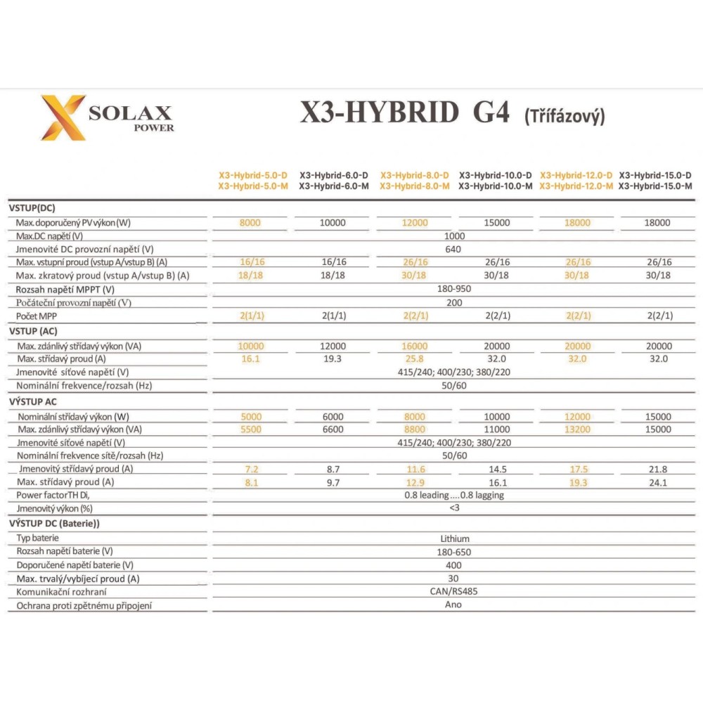 SolaX X3-HYBRID-8.0-D je moderní třífázový hybridní střídač s výkonem 8 kW, který kombinuje...