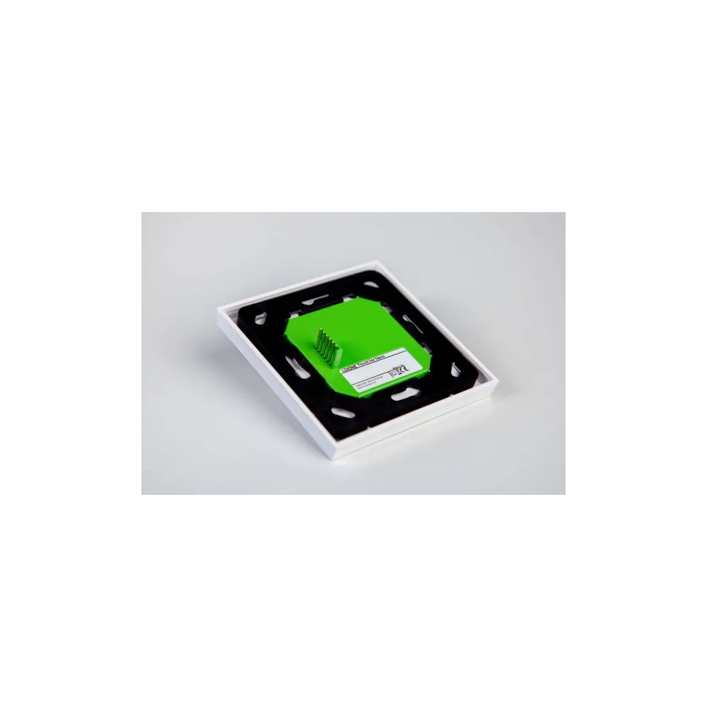 Povrch panelu tvoří skleněná čelní deska v elegantní bílé barvě, na které najdeš **5 dotykových zón** uspořádaných podle standardu — centrální pro klíčovou funkci (např. osvětlení) a čtyři rohové pro sekundární funkce (např. stínění, audio, scény). Každý dotyk je doprovázen jemným «kliknutím» jako akustickou zpětnou vazbou pro intuitivní ovládání. :contentReference[oaicite:3]{index=3}
