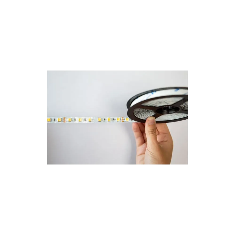 LED pásek 24 V – laditelná bílá (Tunable White) vám umožní měnit barevnou teplotu od teplé bílé (2900 K) až po studenou bílou (6000 K) a vytvořit tak ideální atmosféru pro každou příležitost. Pásek je napájen konstantním napětím 24 V DC, podporuje PWM stmívání a je vhodný jak pro dekorativní, tak i funkční osvětlení.