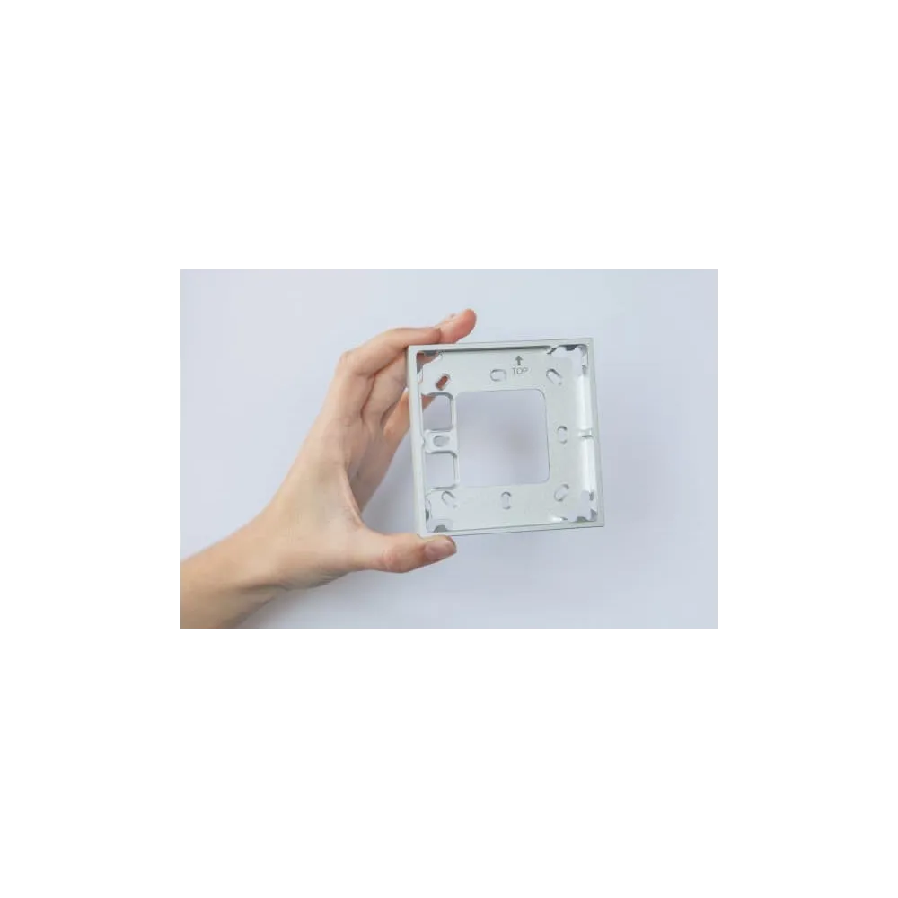 Montážní rámeček 1 modul – stříbrná spojuje precizní zpracování, moderní design a snadnou montáž. Dokonale doplňuje chytré ovládací prvky Loxone a dodává každému interiéru luxusní vzhled.
