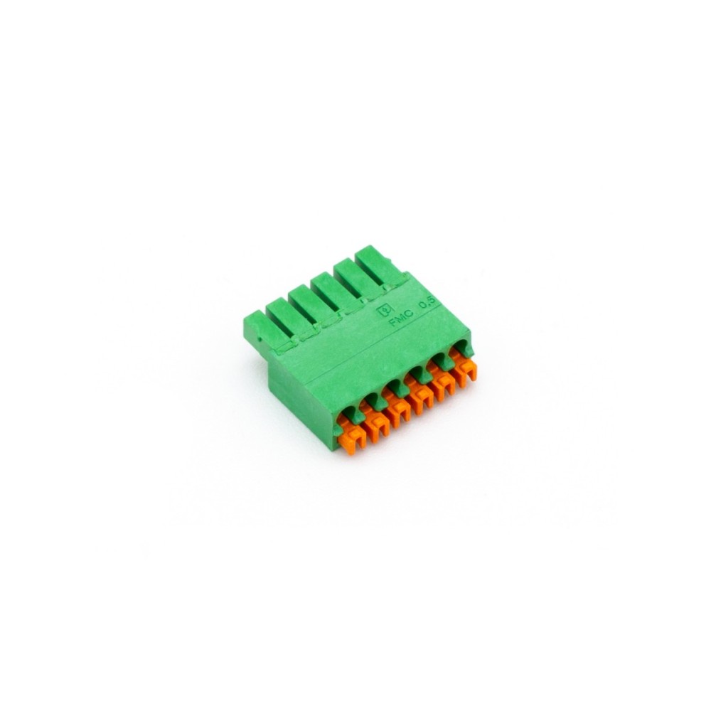 Zelený zasouvací svorkový konektor – 6pinový je kvalitní vícepólový konektor určený pro rychlé, bezpečné a stabilní připojení až šesti vodičů. Ideální pro řídicí moduly, senzory, automatizaci a Smart Home instalace.