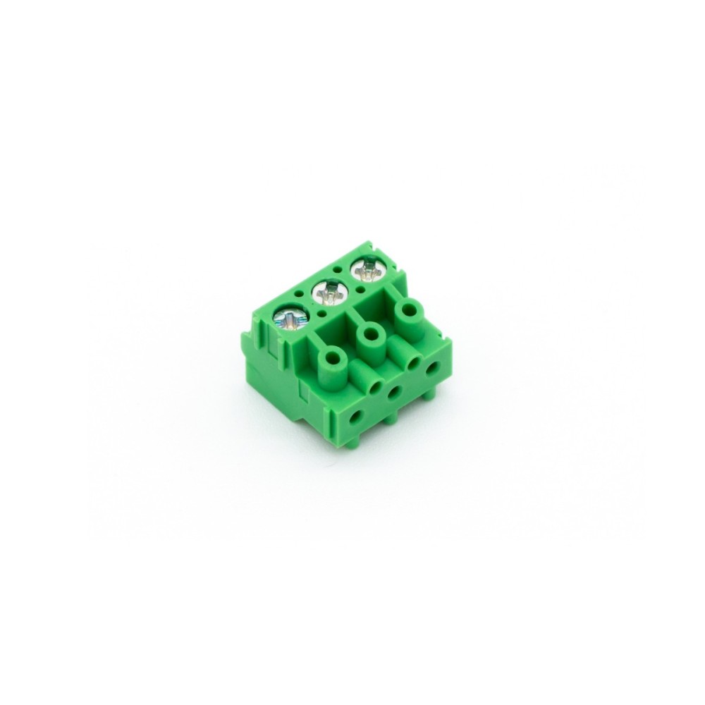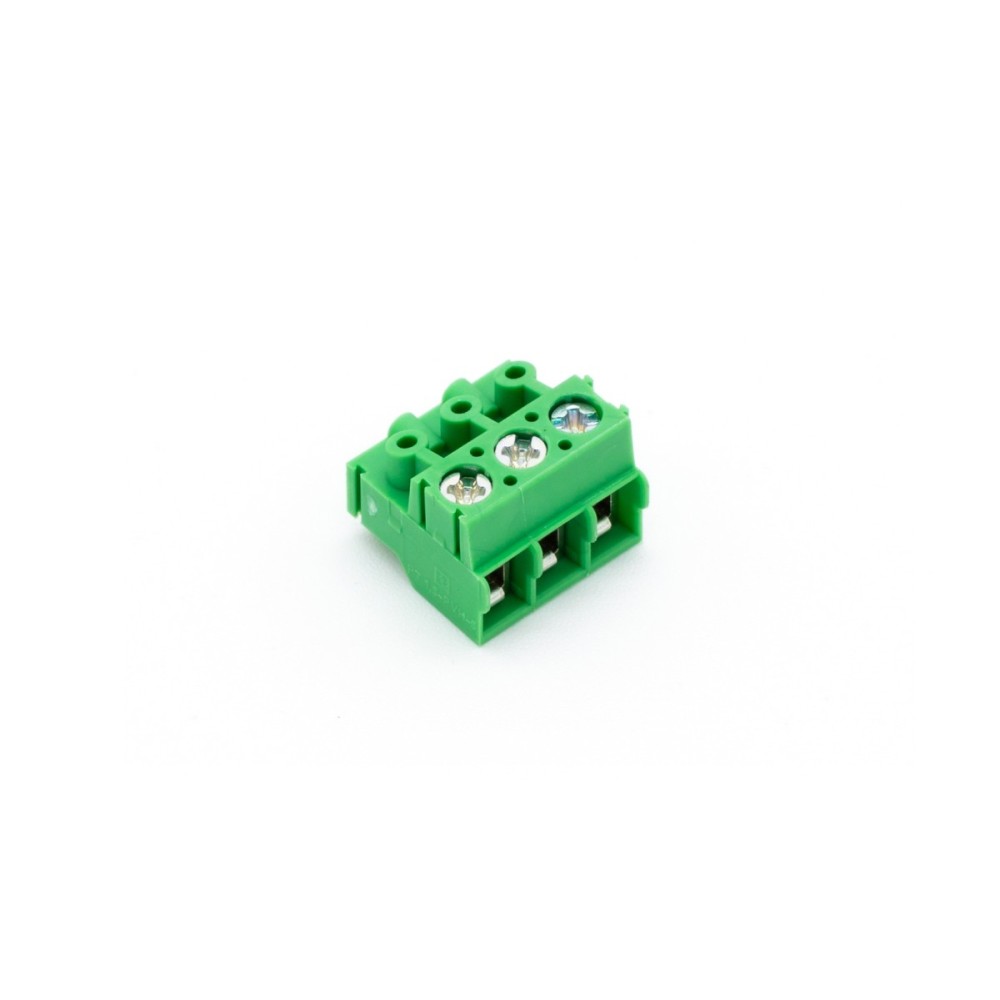 Horní zelený šroubovací svorkový konektor – 3pinový je třípólová svorkovnice s horním přístupem ke šroubům, určená pro pevné a bezpečné připojení vodičů v řídicích, signálních i nízkonapěťových obvodech.