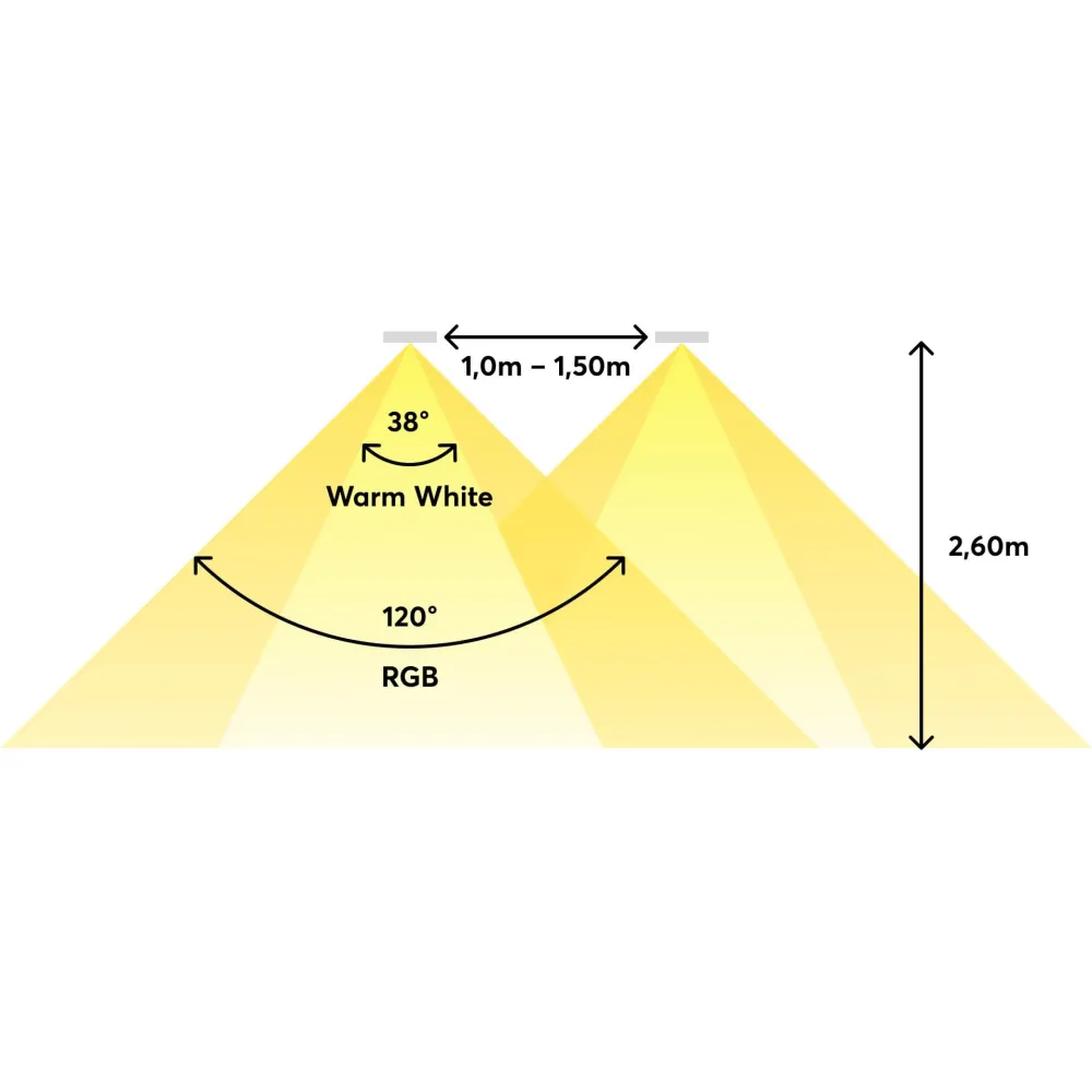 * Jemné stmívání. * Směrové teplé bílé světlo. * Rozptýlené barevné světlo. * Spoty lze řídit...