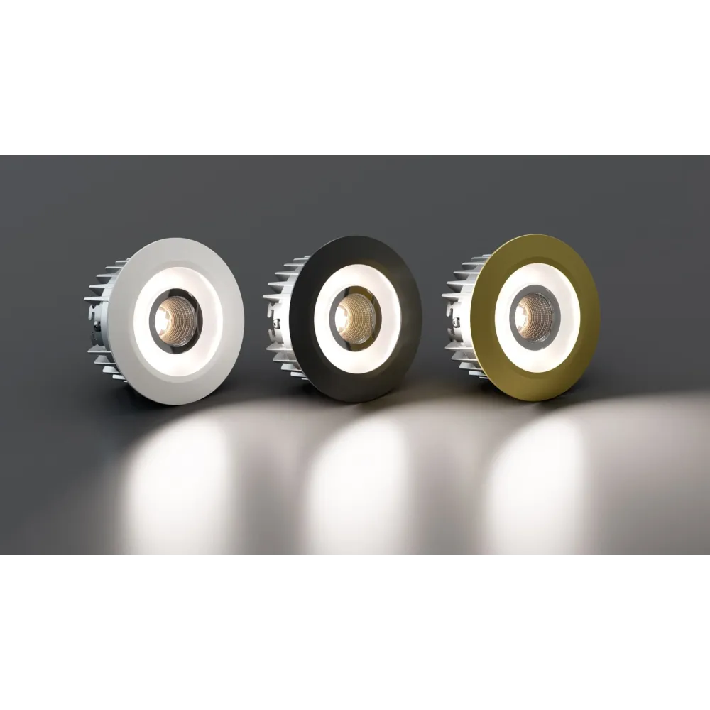 LED Spot RGBW Tree ve stylovém zlatém provedení je inteligentní podhledové svítidlo určené pro systém Loxone Tree. Nabízí plynulé řízení barvy, intenzity i teploty světla s možností vytváření personalizovaných světelných scén – od funkčního osvětlení až po atmosférické podsvícení interiéru.