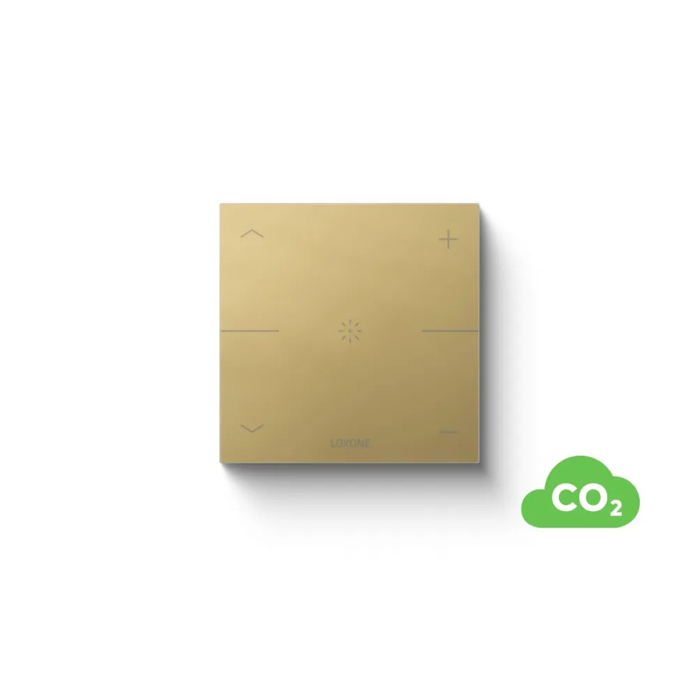 Loxone Touch Pure CO₂ Tree (zlatá) – ovládací panel, který spojuje luxusní design s inteligentní funkcí. Sledujte kvalitu vzduchu, ovládejte scénáře a užijte si maximální komfort ve svém chytrém domě.