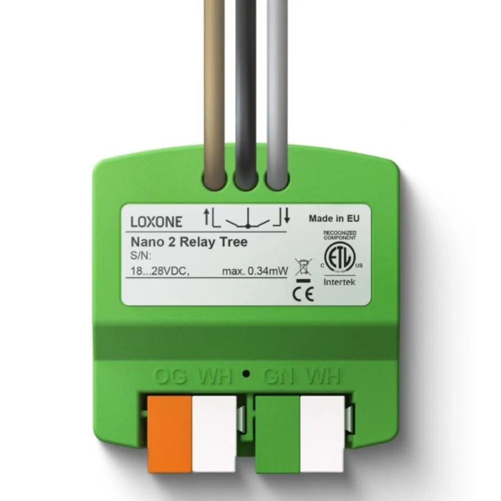 Loxone Nano 2 Relay Tree je kompaktní dvoukanálové reléové zařízení určené pro přímou montáž do instalační krabice pod vypínač. Je ideálním řešením pro ovládání světel, zásuvek, motorů nebo jiných elektrických zařízení v systému Loxone Smart Home. Díky technologii Tree zajišťuje rychlou a spolehlivou komunikaci s Miniserverem.