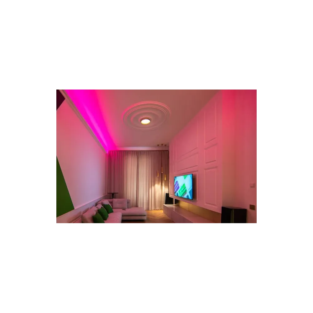 Luxusní zlatý povrch dodá interiéru teplý a exkluzivní vzhled, zatímco výkonné RGBW LED diody nabídnou široké spektrum barev i laditelnou bílou. Perfektní volba pro prostory, kde se snoubí elegance, funkčnost a chytrá technologie.